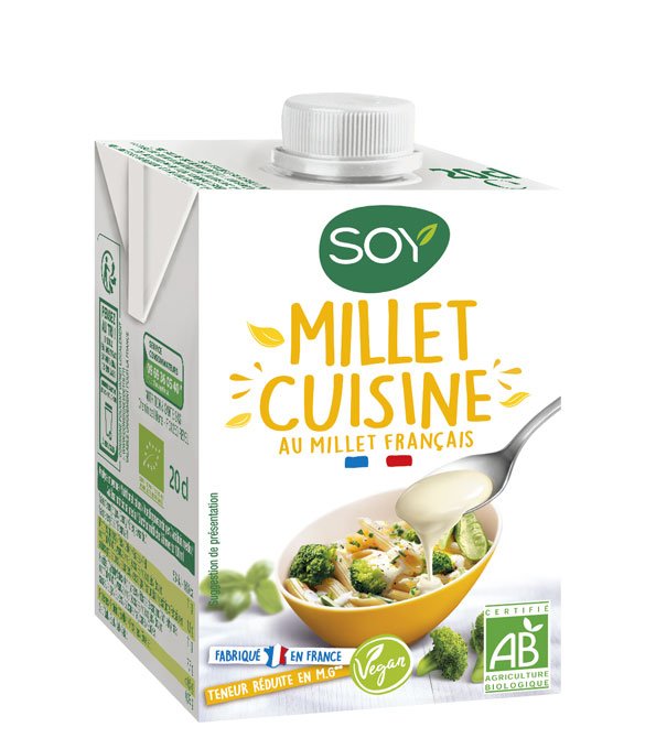 Petite nouveauté chez SOY, puisque la marque innove et propose une nouvelle aide culinaire 100% végétale ! Naturellement sans lactose et sans gluten, la MILLET CUISINE est une alternative végétale équilibrée.